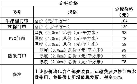 2021年超市事業(yè)部門簾采購招標(biāo)結(jié)果: