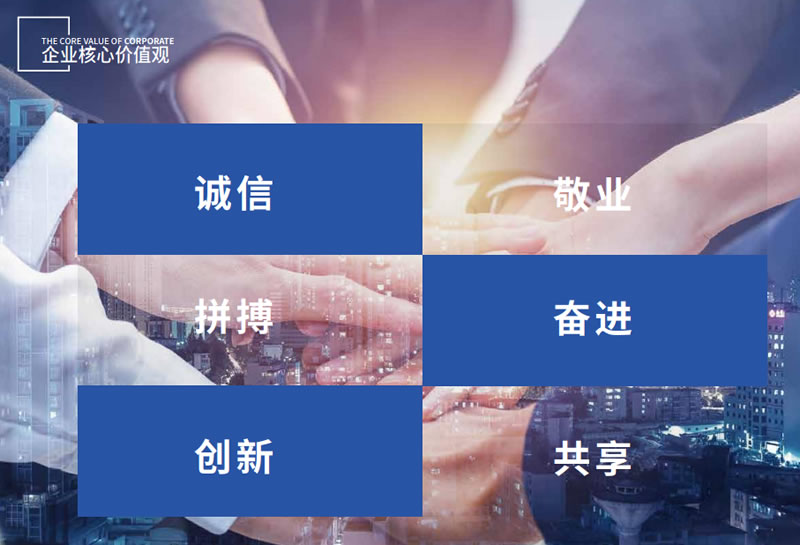 企業(yè)核心價值觀:誠信、敬業(yè)、拼搏、奮進、創(chuàng)新、共享