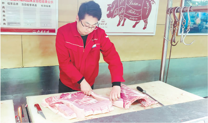 胡建飛作為超市民生商品銷售的專柜管理人員,為了給顧客提供更好的服務(wù)及高質(zhì)量的商品,練就了一套過硬的分割技能。從剛到生肉專柜開始,他為了盡快掌握業(yè)務(wù)知識,每天比別人早到半個小時。收貨時,嚴(yán)格把控商品質(zhì)量,每天堅持營業(yè)前檢查商品的品種和陳列情況及貨量。在實(shí)踐中積極練習(xí)分割技術(shù),熟練掌握對白條豬肉每個部位的分割、測算及定價。在生肉專柜17年,胡建飛一直站在顧客角度考慮問題,有一次,有位顧客要買一塊6斤6兩的一刀肉,胡建飛憑借自己扎實(shí)的技術(shù)功底分毫不差切出了肉,獲得了顧客的稱贊。胡建飛說:“作為一名生肉員工,就是以一名服務(wù)人員的姿態(tài)面對顧客,要盡自己最大的努力做到最好。”