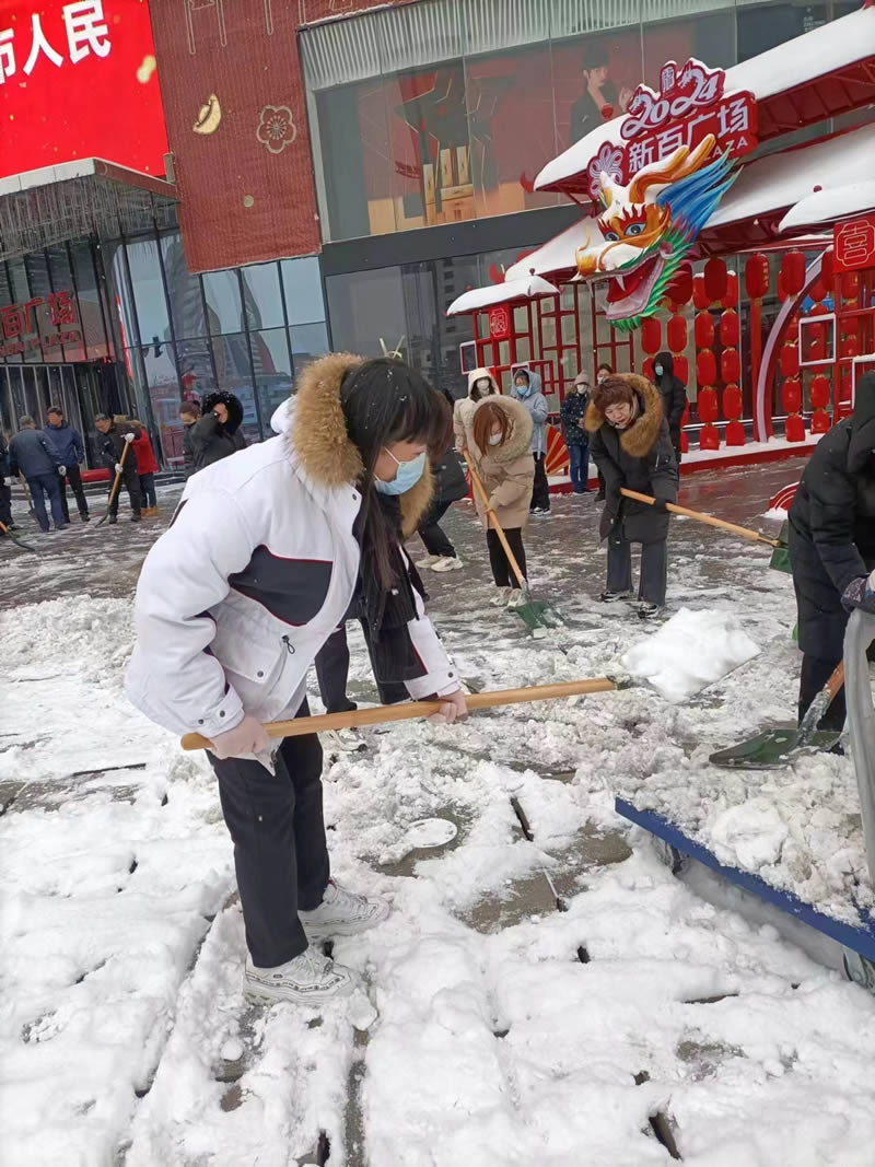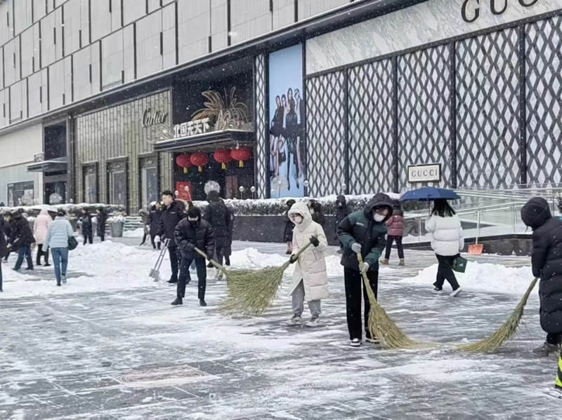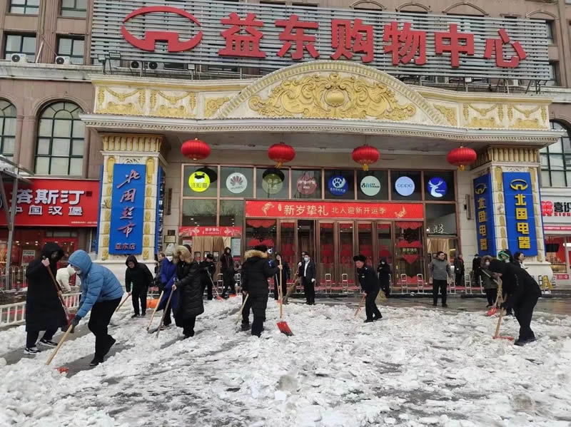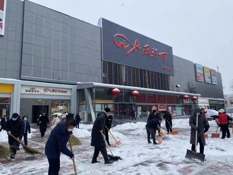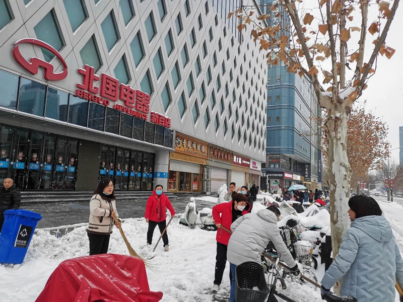 2月20日至21日,石家莊普降大雪,給市民出行、消費(fèi)者購物帶來了諸多不便。北人集團(tuán)旗下各賣場認(rèn)真履行“門前三包”義務(wù),組織干部員工及時(shí)清理門前積雪和殘冰,保障門店前道路通暢、行人安全出行。