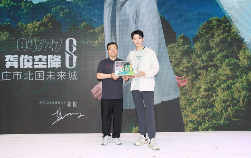 4月27日下午,361°全球品牌代言人龔俊線下活動見面會在石家莊北國未來城舉辦,現(xiàn)場氛圍熱情火爆。北人集團(tuán)黨委書記、董事長徐建航,黨委副書記、工會主席趙雪飛,副總經(jīng)理王慧橋、劉雋出席361°龔俊線下見面會。徐建航為龔俊送上來自361°頂級碳板鞋飛燃3跑鞋。龔俊也為北人集團(tuán)精心準(zhǔn)備了一份具有紀(jì)念意義的禮物——一幅藝術(shù)拼貼畫作。