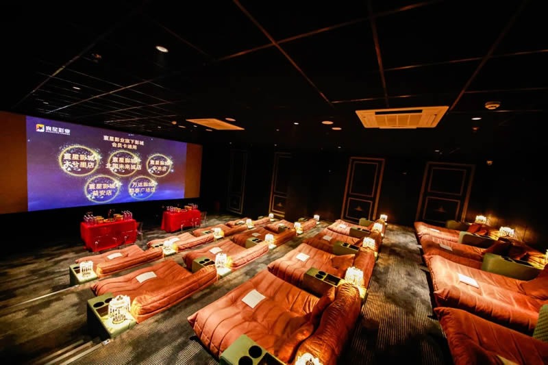 寰星影城整體以橙藍(lán)對(duì)比色為主色調(diào),擁有7個(gè)影廳,共585個(gè)座位,包含豪華VIP床廳、兒童廳、星空廳等不同特色主題。影廳全部采用全激光、高亮度進(jìn)口巴可放映機(jī)、高保真3D環(huán)繞立體音響及不同形式的高級(jí)感座椅,讓顧客在觀影時(shí)更具尊貴性、私密性、舒適性。影城致力于提供優(yōu)質(zhì)而精心的服務(wù),從購(gòu)票到入場(chǎng)、從觀影到離場(chǎng),每個(gè)細(xì)節(jié)都精心安排,為觀影者打造賓至如歸的觀影體驗(yàn)。