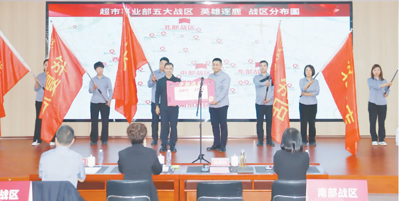 隨后,集團(tuán)黨委書記、董事長徐建航,黨委副書記、副董事長、總經(jīng)理胡文茹,北國股份副總經(jīng)理白麗茹,超市事業(yè)部總經(jīng)理韓國斌分別為各戰(zhàn)區(qū)區(qū)長頒發(fā)任務(wù)指標(biāo)牌,各戰(zhàn)區(qū)干部員工紛紛喊出口號,表達(dá)本戰(zhàn)區(qū)攻堅克難、拼搏進(jìn)取的決心。