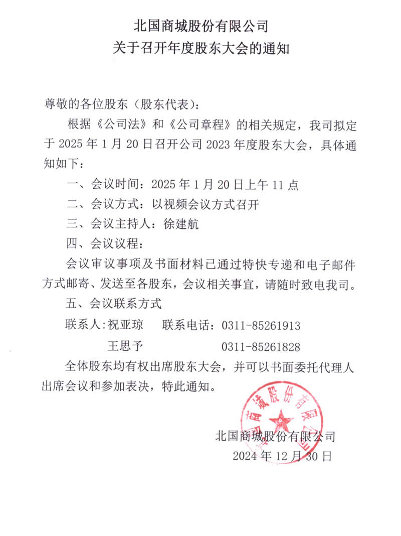 北國商城股份有限公司關(guān)于召開年度股東大會(huì)的通知