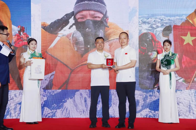 伴隨著員工代表們鏗鏘的誓言,北人集團25周年慶典正式啟幕,活動特邀石家莊登頂珠峰第一人欒鈺堃到場,助力集團25周年慶典,北人集團黨委書記、董事長徐建航與欒鈺堃互贈禮物并合影留念。