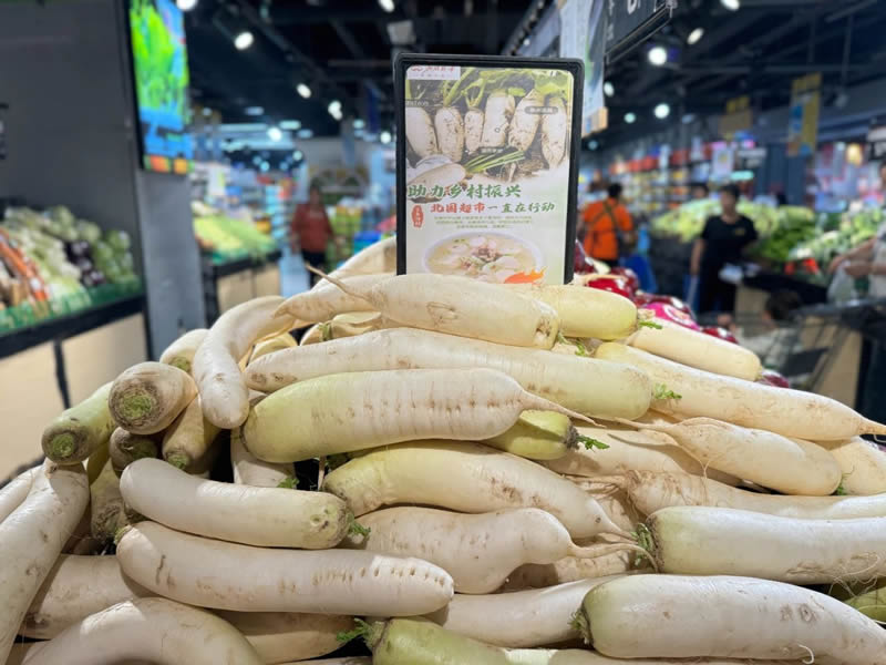 助力鄉(xiāng)村振興,平山縣上觀音堂鄉(xiāng)了魚溝村的白蘿卜在北國超市上柜售賣