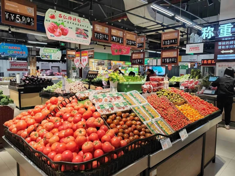 針對傳統(tǒng)果蔬流通環(huán)節(jié)冗長、層層加價與時間損耗導(dǎo)致品質(zhì)下降的痛點,北人集團(tuán)組建專業(yè)團(tuán)隊,跨越十余個省份深入調(diào)研,在河北、山西、甘肅、內(nèi)蒙古、遼寧、山東、云南、四川、海南等全國優(yōu)勢產(chǎn)區(qū)搭建起34個西紅柿直采基地。產(chǎn)地直采模式的實施,有效顛覆了傳統(tǒng)多級分銷路徑。海南基地的番茄于清晨采摘,當(dāng)日完成分揀發(fā)運,借助集團(tuán)高效的陸運物流網(wǎng)絡(luò),3天內(nèi)即可配送至石家莊各北國超市門店。這些高品質(zhì)西紅柿銷量屢創(chuàng)新高,是消費者對“產(chǎn)地直采+高效物流+終端賣場”一體化運營模式的高度認(rèn)可。