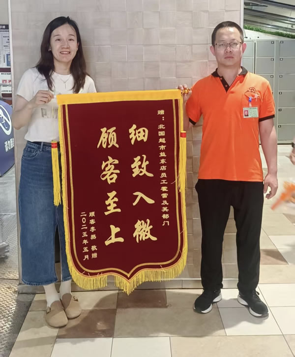 原本以為事情就這樣過(guò)去了,沒(méi)想到過(guò)了兩天,霍雷收到了顧客贈(zèng)送的錦旗,這一刻,他的心瞬間被幸福包圍。守護(hù)顧客的財(cái)物安全,是安保人員的職責(zé)所在;衾妆硎,今后會(huì)繼續(xù)用實(shí)際行動(dòng)踐行這份承諾。