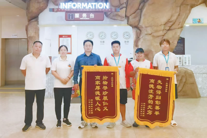 在室外急速激流河,一名游客在游玩時(shí)丟失了昂貴的水晶近視鏡,由于高度近視,丟失后他非常著急,找到了工作人員及服務(wù)臺(tái)。準(zhǔn)備下班的救生員收到消息后急忙下水尋找,但由于當(dāng)時(shí)天色已晚未能找到。接下來(lái)的一周,救生員們利用工作間隙一次次潛入水中,在復(fù)雜的河道環(huán)境里細(xì)細(xì)排查,終于找到眼鏡并打撈上來(lái),成功將近視鏡歸還給游客。本以為事情到這里就告一段落了,沒(méi)想到第二天這位游客送來(lái)一面錦旗表達(dá)感謝,這份被認(rèn)真對(duì)待的感動(dòng),讓默默付出的救生員們也收獲了意外的溫暖。
