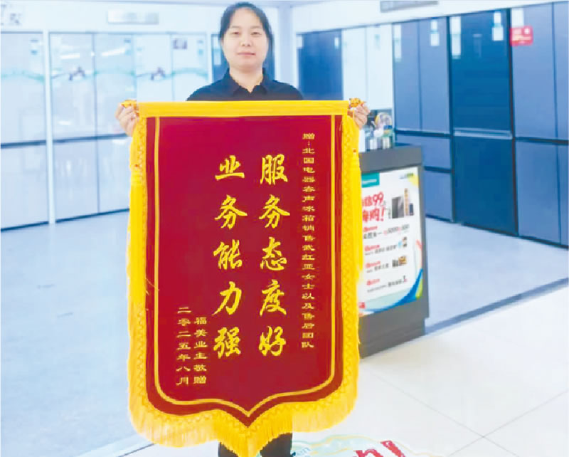 近日,欒城區(qū)北國電器容聲冰箱導(dǎo)購員武紅亞收到了一面寫有“服務(wù)能力好,業(yè)務(wù)能力強(qiáng)”的錦旗,這不僅是對(duì)其個(gè)人工作的高度認(rèn)可,更是對(duì)北國電器服務(wù)理念和管理水平的生動(dòng)贊譽(yù)。這面來自本地顧客的錦旗,背后是長達(dá)十個(gè)月的服務(wù)長跑,更是縣域消費(fèi)者對(duì)北國電器品牌信任的有力見證。