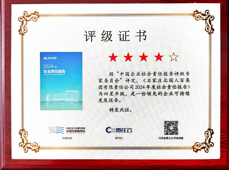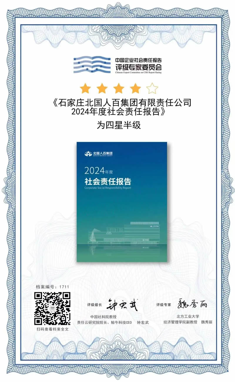 近日,經(jīng)中國(guó)企業(yè)社會(huì)責(zé)任報(bào)告評(píng)級(jí)專家委員會(huì)嚴(yán)格評(píng)定,《北人集團(tuán)2024年度社會(huì)責(zé)任報(bào)告》獲得“四星半級(jí)”評(píng)級(jí)。