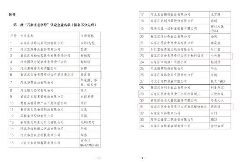 為進一步推動老字號守正創(chuàng)新發(fā)展,石家莊市商務(wù)局、市文化廣電和旅游局、市市場監(jiān)督管理局聯(lián)合開展了石家莊老字號認定工作。經(jīng)各縣(市、區(qū))推薦、專家評審、現(xiàn)場核查、公示等,認定34家企業(yè)為首批石家莊老字號,石家莊飲食有限責任公司中和軒飯莊、燕風樓烤鴨店、紅星飯莊、釜洋齋總店四家餐飲企業(yè)成功入選。